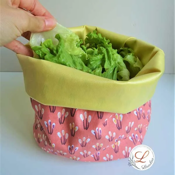 Sac à salades et légumes en tissu imperméable, Fait main, Ecoresponsable